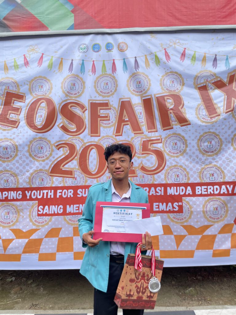 Medan, May 16, 2025 — Another proud achievement was made by Hardiant Terrent Zetta Mahendra, a Geography student, who won 2nd place in the national GEOSFAIR IX 2025 competition. The competition, organized by the Indonesian Geography Student Association (IMAHAGI) at the University of North Sumatra (UNIMED), took place over two days, May 15–16, 2025, and was attended by 30 participants from various universities across Indonesia.